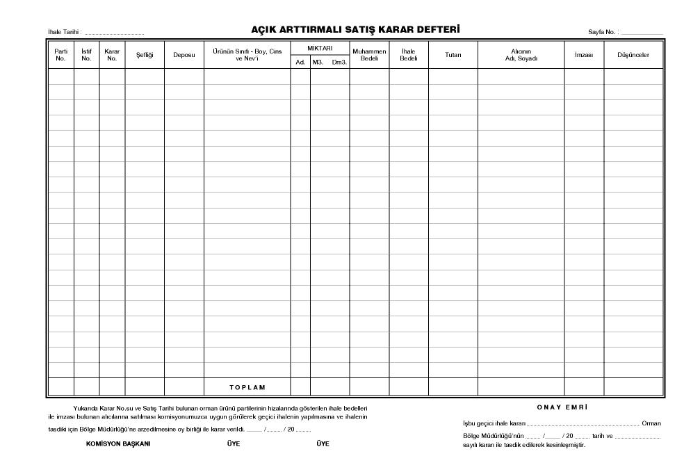 AÇIK ARTTIRMALI SATIŞ KARAR DEFTERİ